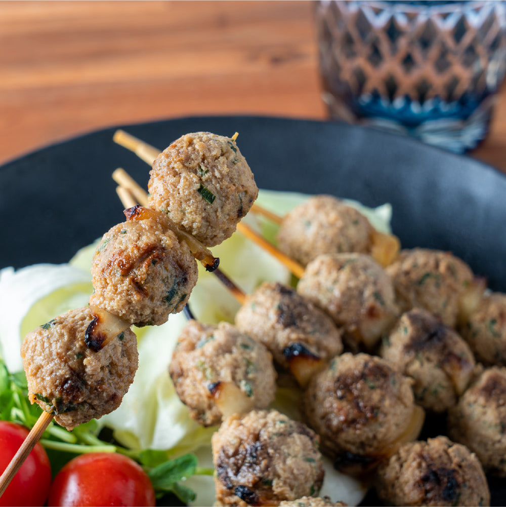 お肉は豚肉と鶏肉を使用。二種のお肉のジューシーさと旨味が混ざり合い、合わせ技の美味しさがお口いっぱいに広がる贅沢なつくねに。また、アクセントとして加わるニラが良い香りづけとなり、つなぎの山芋がふっくら感を演出。加わるすべての食材が、この美味しさを作り上げているのです!